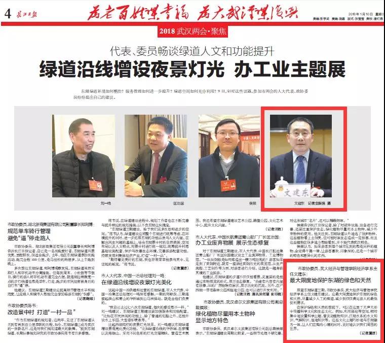 2018年1月10日,武汉“两会”期间,长江日报第四版、五版分别刊登民进界别市政协委员文建东、董菲的建言。