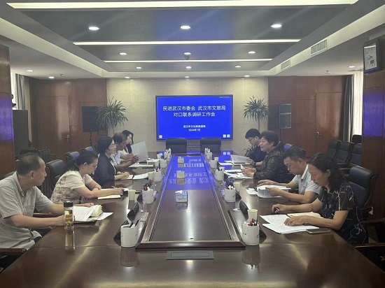 2024年7月12日,民进武汉市委会专职副主委黄芬率调研组赴武汉市文旅局开展对口联系调研活动。文旅局一级调研员、组织人事处处长孙颖以及相关部门负责人参加会议。