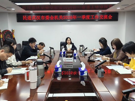 4月9日,民进武汉市委会机关召开2026年一季度工作交流会。市委会专职副主委黄芬主持会议,全体机关干部参加会议。