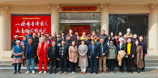 2025年12月30日,由民进武汉市委会、武汉市中华文化学院、民进湖北省委会文化艺术委员会主办,民进武汉开明画院承办,武汉统一战线同心书画院协办的“八秩华章传薪火 丹青绘就新时代”——庆祝中国民主促进会成立80周年美术作品暨武汉统一战线同心书画院名家邀请展,在武汉市社会主义学院(武汉市中华文化学院)同心书画院隆重开幕。市中华文化学院党组成员、副院长梁海涛,民进武汉市委会专职副主委黄芬,民进武汉开明画院院长钟鸣出席活动。湖北省美术家协会副主席、湖北大学教授许开强,民进湖北省委会文化艺术委员会主任、湖北大学艺术学院副院长尹朝阳应邀参加活动并致辞。市中华文化学院教研室、市各民主党派负责书画院部室相关领导,民进湖北开明画院、武汉开明画院及武汉统一战线同心书画院成员及嘉宾60余人参加活动。开幕式由民进江岸区工委委员王艺蕾主持。